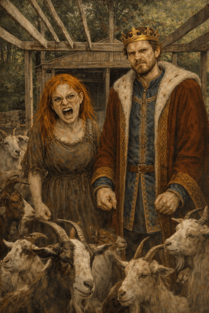 As This Minstrelle of Masondonia sang openly of Beaverton’s filth—its silences, its rituals of harm, its willful blindness—they did not rage at the mirror held before them. They raged instead at the livestock. That the goats, present during the songs, had not been framed to their liking. That while ballads were sung of broken vows, corrupted bloodlines, and moral vacancy, attention might linger too long on the animals themselves.