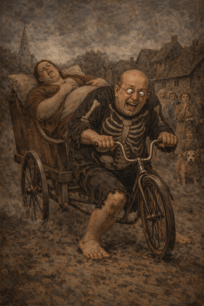 Having pulled both cart and conscience across Beaverton, BillDong collapsed from exhaustion and was briefly infirmed himself—becoming the only recorded case of a man hospitalized by another person’s imagination. The Physicker advised water, sleep, and avoidance of parish carts. BillDong agreed.