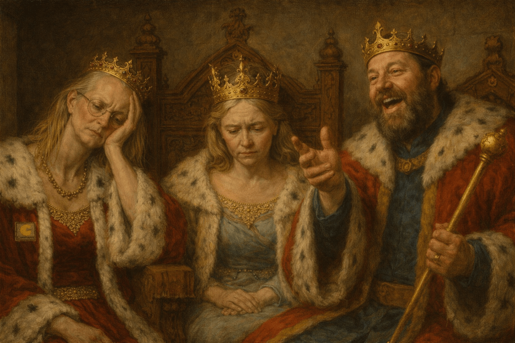 He speaks often of himself, and always in the language of labor. He calls himself a working king. A provider. A man who knows the price of bread. These are admirable claims. Yet when matters requiring actual governance arise, eg weights, measures, schedules, priorities, his attention drifts. He refuses stewards not from competence, but from fear of appearing unneeded.