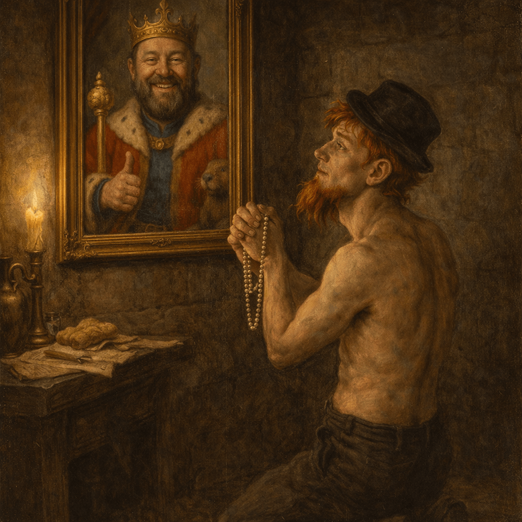 Little Lord Bucker — the drinker, the swearer, the enthusiast of premarital gymnastics, the recreational pharmacist, the patron saint of sleeping past noon — periodically discovers religion the way a raccoon discovers a shiny object: loudly, briefly, and with no lasting behavioral change whatsoever.