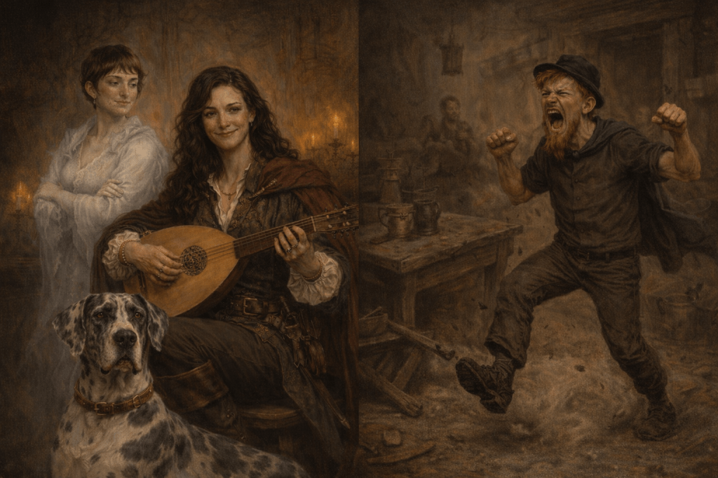 Each time her name was sung, she stood beside This Minstrelle and her Dane instead, calm and unmistakably present, the way a person stands beside a witness to confirm the record.